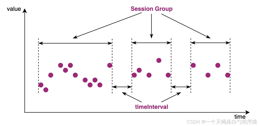 设定的时间差阈值,当两条数据时间列的差值大于该阈值,则会给数据创建一个新的分组。