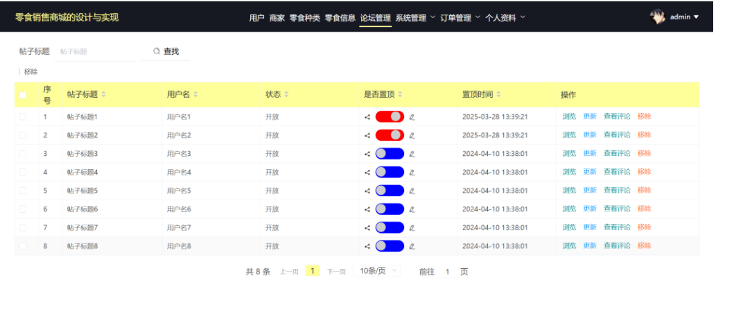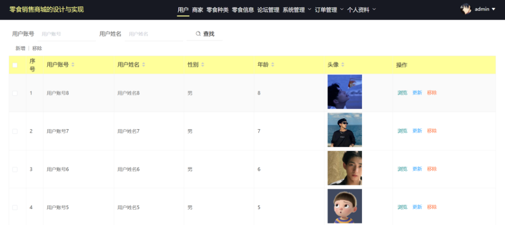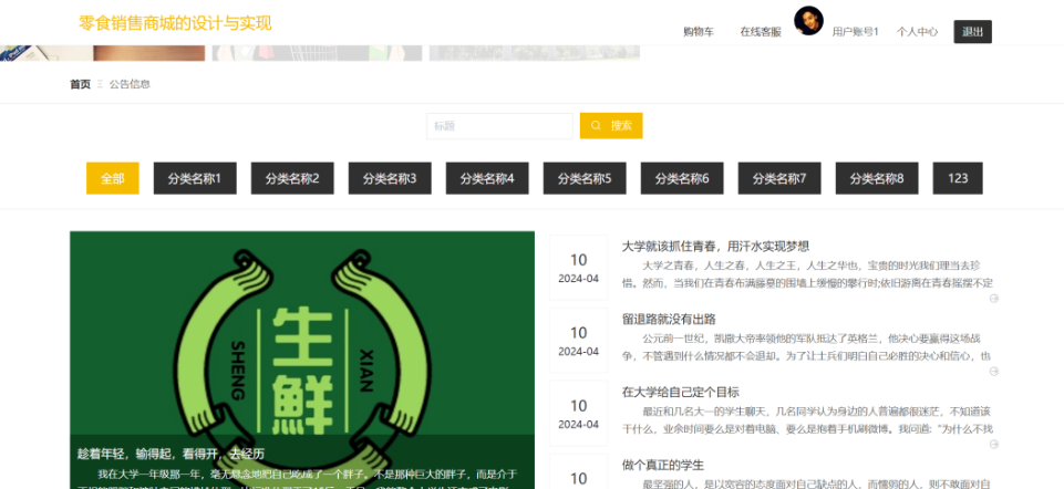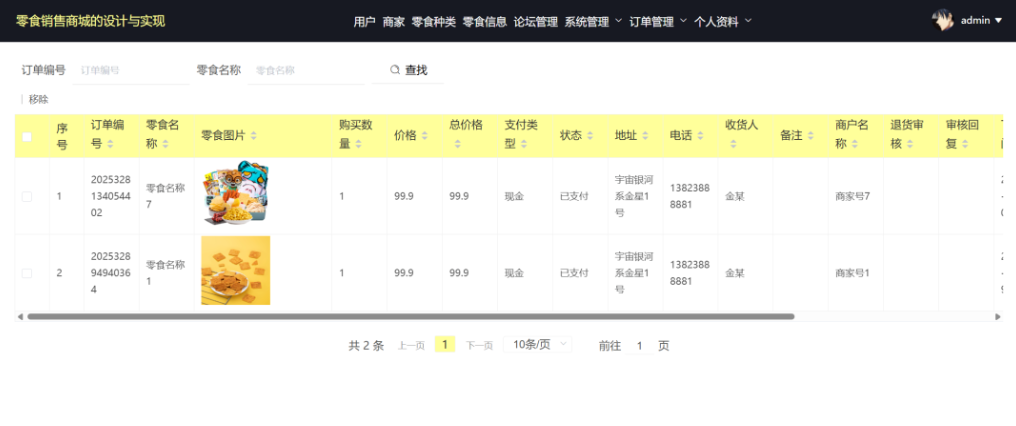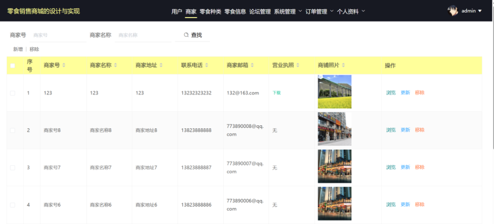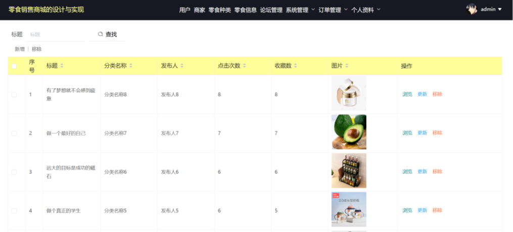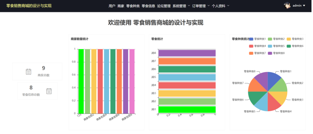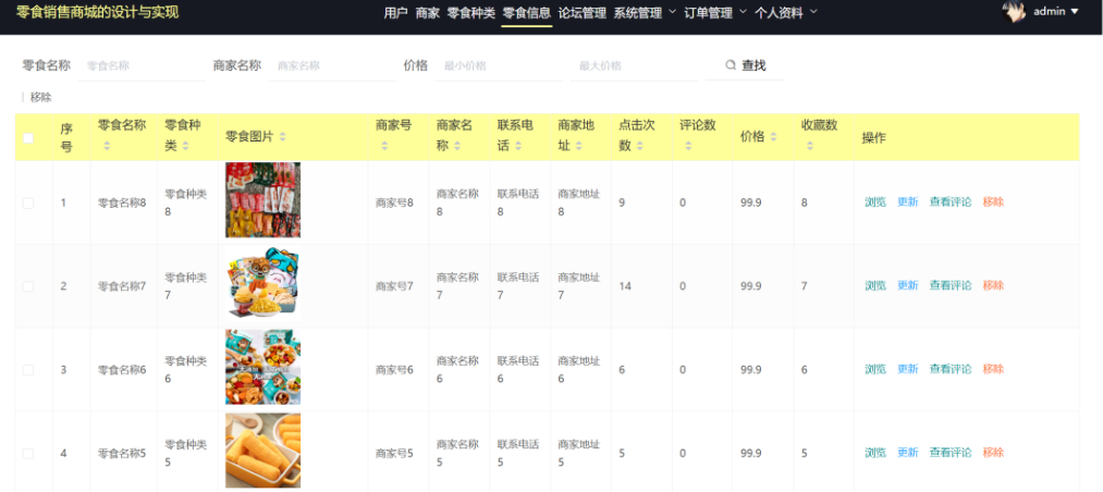 基于Springboot+Vue实现的零食销售商城采用前后端分离架构方式,系统设计了管理员、用户、商家三种角色,系统实现了用户登录与注册、个人中心、用户管理、商家管理、零食种类管理、零食信息管理、论坛管理、在线客服、公告信息管理、公告信息分类管理、订单管理、轮播图管理等功能。
