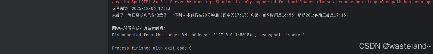 我们可以通过上面的设置闹钟代码案例来看它的异常处理情况: