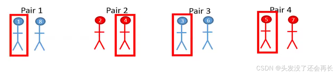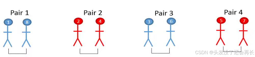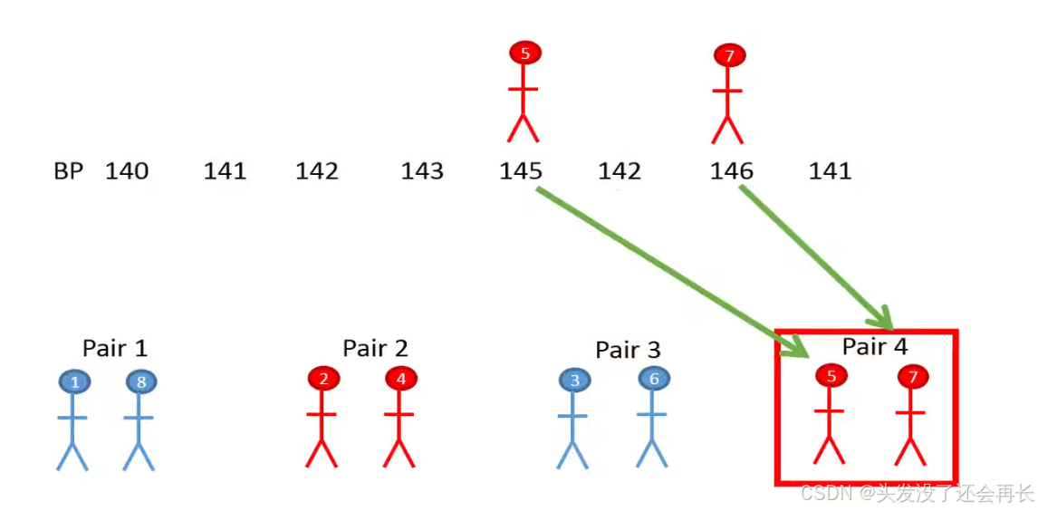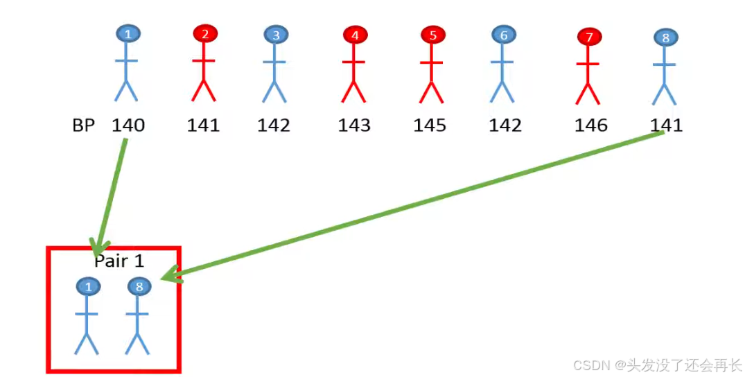 We have four men and four women for example we could pair person number one and eight who have a similar blood pressure and they both men .