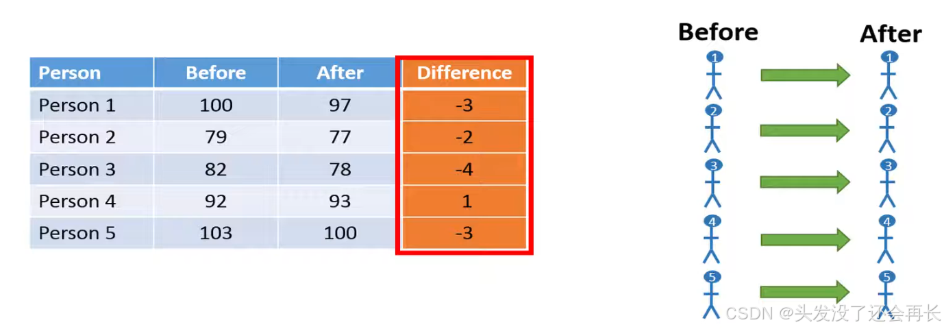 After some times, we check the difference in systolic blood pressure between the pairs , the advantage of this study design is that we will reduce the variability between people since we look at the differ difference between similar individuals.