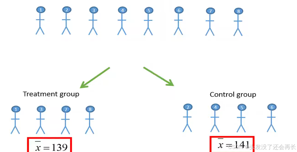 One could randomly assign the individuals into a treatment group and a control group due to chance person number 1 3 7 and eight were placed in the drug treatment group whereas person number 2, 4, 5 and six were placed in the control group. The individuals in the control group will not receive the drug instead these individuals might receive a place treatment.