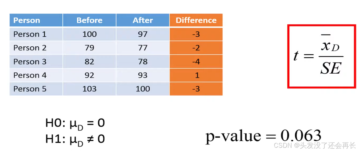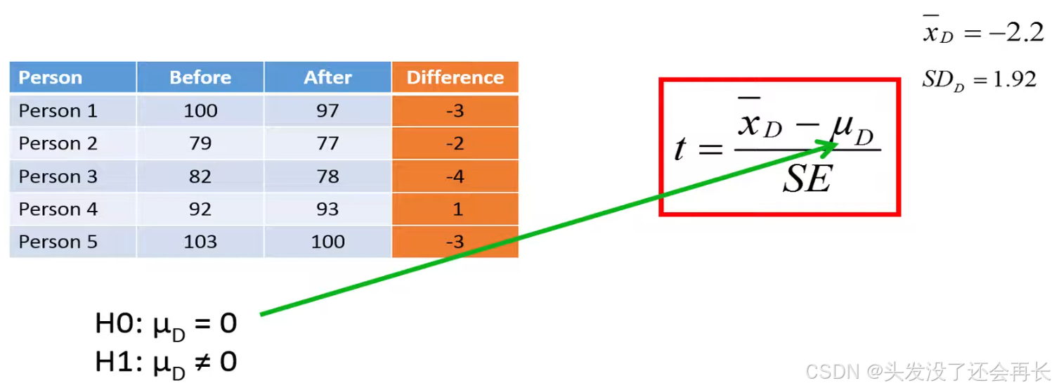 In our sample indicates that the diet might result in weight loss, however we'll now use a par T test to see if this observed difference is enough to reject an null hypothesis, in other words we'll use a pair t-test to determine if we have enough evidence to say that the observed weight loss is not just due to chance .