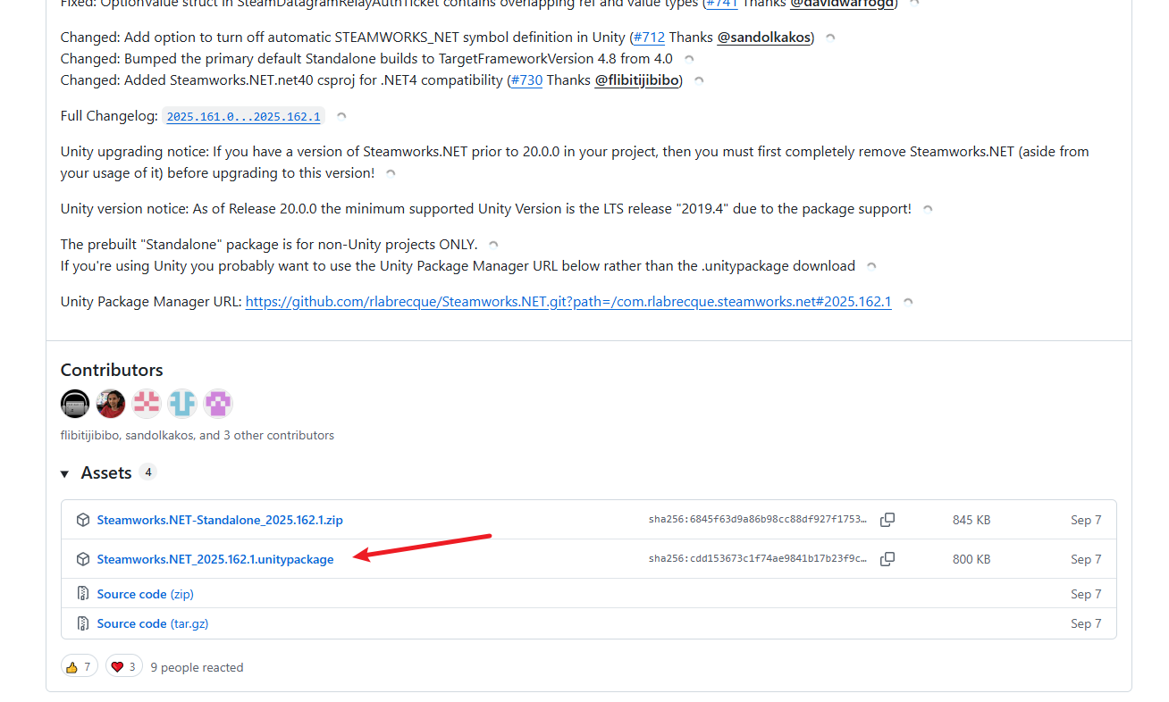 https://github.com/rlabrecque/Steamworks.NET/releases/tag/2025.162.1