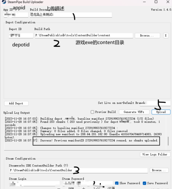 5、然后就通过SteamPipeGUI工具将自己的exe包进行上传了