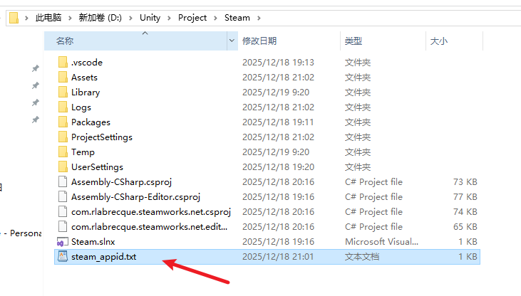 steam_appid.txt文件,默认是480,是UnitySpaceWar的id,把480改成你自己的appid(appid在Steamworks 创建应用的时候会分配)