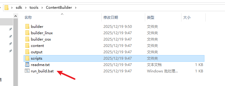 3、将自己的游戏打包出来,将整个打包的游戏文件拷贝到sdk/tools/ContentBuilder/content下面