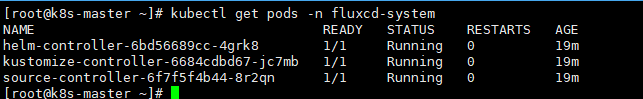 1/1则正常,如果不是可使用命令查看卡到哪了:kubectl describe pods -n fluxcd-system pod名称