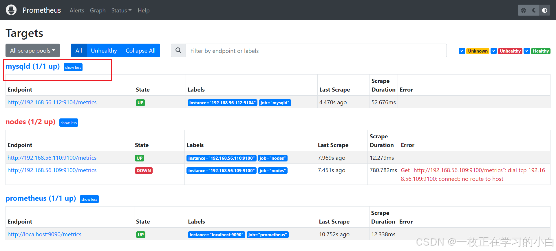 更改完成后重启prometheus,在前端页面查看是否配置成功