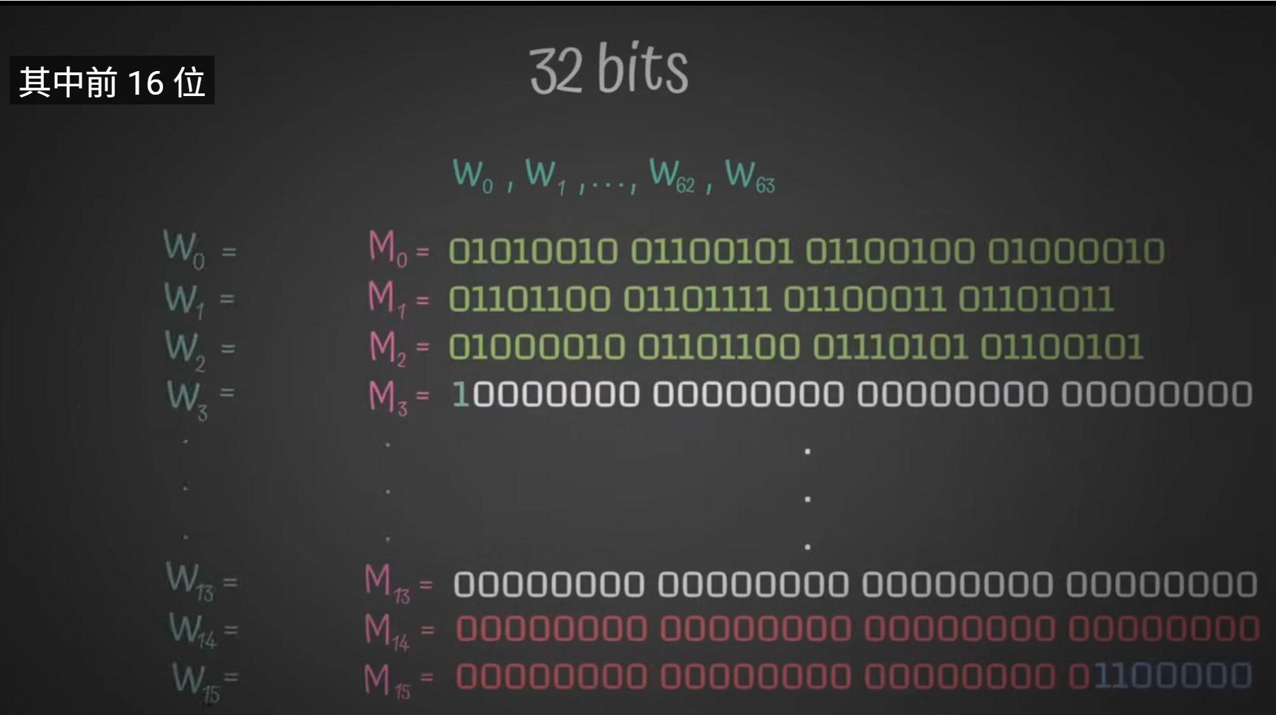 因为在我们的例子中输入只有512位,所以我们只有一个块