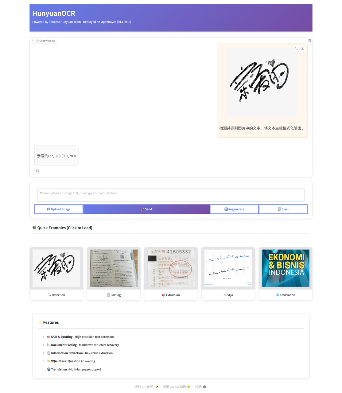1B 参数的规模,使这些能力具备现实部署价值。单卡即可运行,让端到端 OCR 不再只是研究概念,而是可以真正落地使用。本教程将基于 OpenBayes 平台,直观展示 HunyuanOCR 在真实文档场景中的表现。