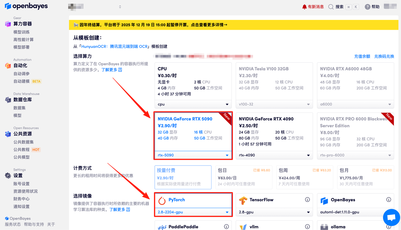 使用云平台: OpenBayes