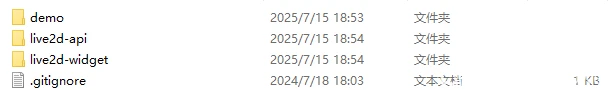 其中,live2d-api为后端api接口文件(包含模型及其他配置文件);live2d-widget为前端载入 live2d 的模型和服务。若只使用自带的模型,直接将live2d-api文件上传到服务器即可;对于live2d-widget文件我们需要进行一点小修改