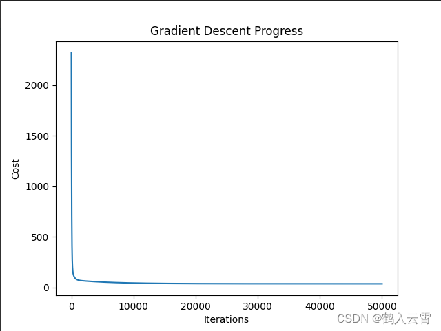 cost_history = self.gradient_descent(alpha, num_iterations)