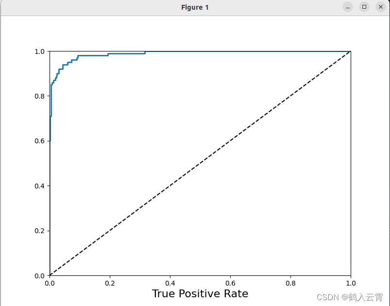 虚线表示纯随机分类器(瞎蒙)的roc曲线;一个好的分类器尽可能远离该线(朝左上角)