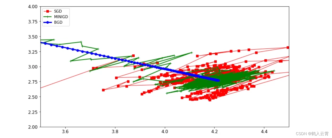 每次找一个样本,迭代速度快,但不一定每次都朝着收敛的方向