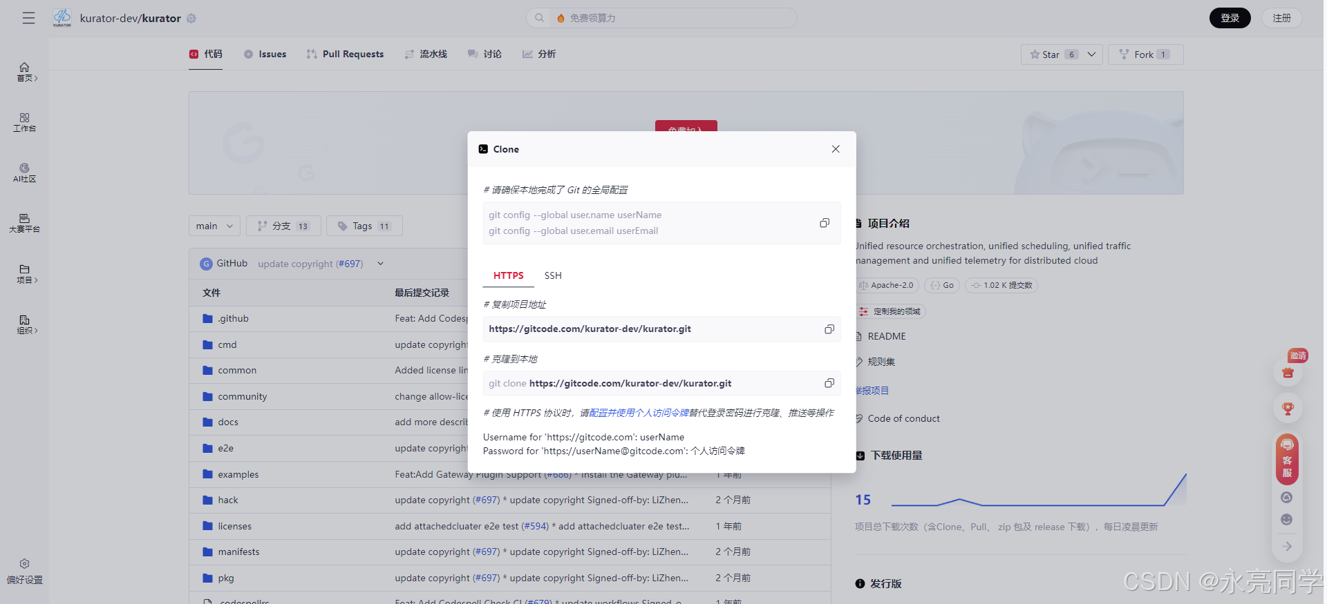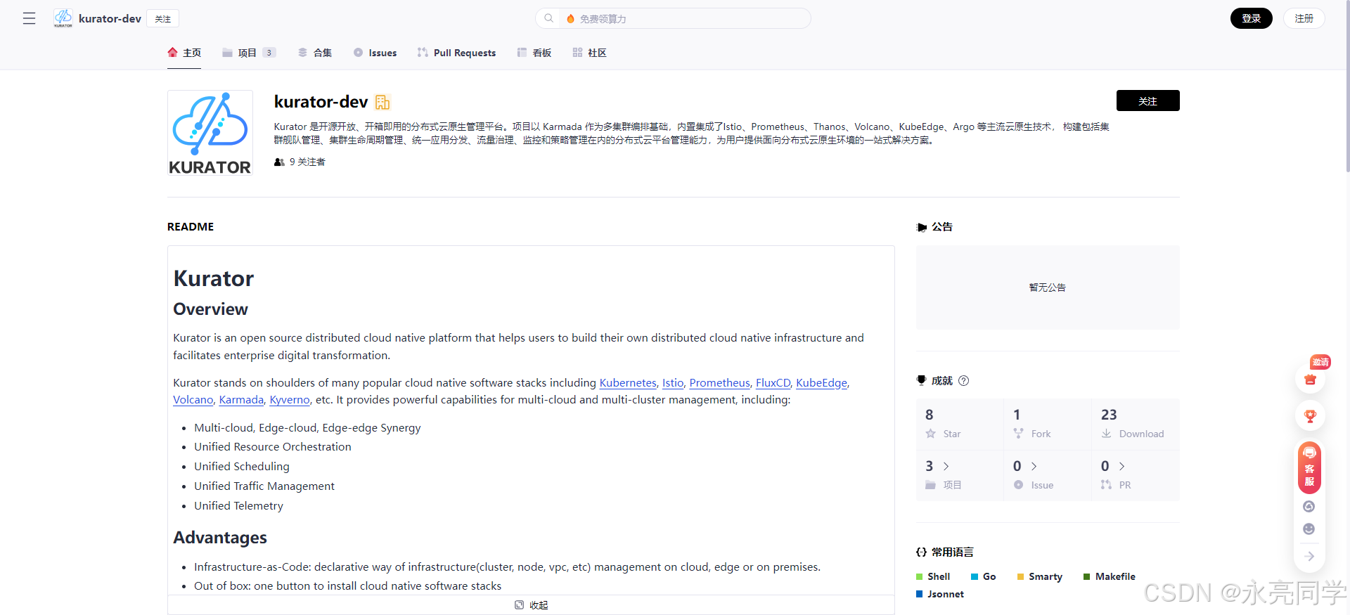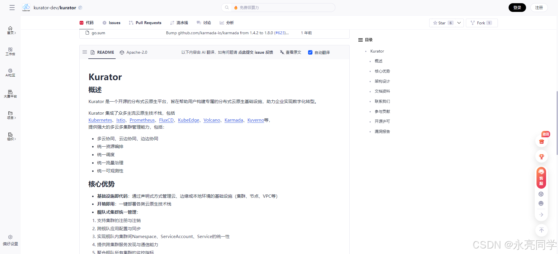 1、我们先打开开源项目地址:https://gitcode.com/kurator-dev/kurator
