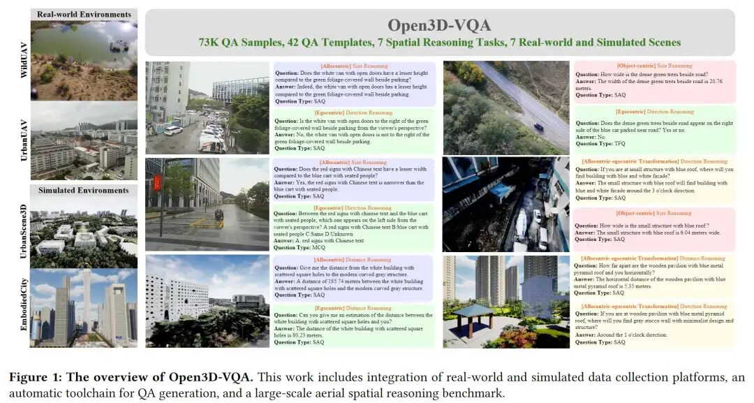 双源数据支撑:整合真实无人机航拍数据(来自深圳、罗马尼亚等地)和高保真模拟场景数据,共7.3万条问答对,既保证真实性又提升数据多样性;