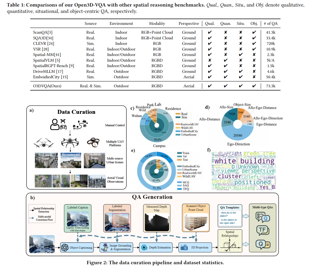 为解决上述痛点,团队打造了Open3D-VQA基准,核心创新体现在三方面: