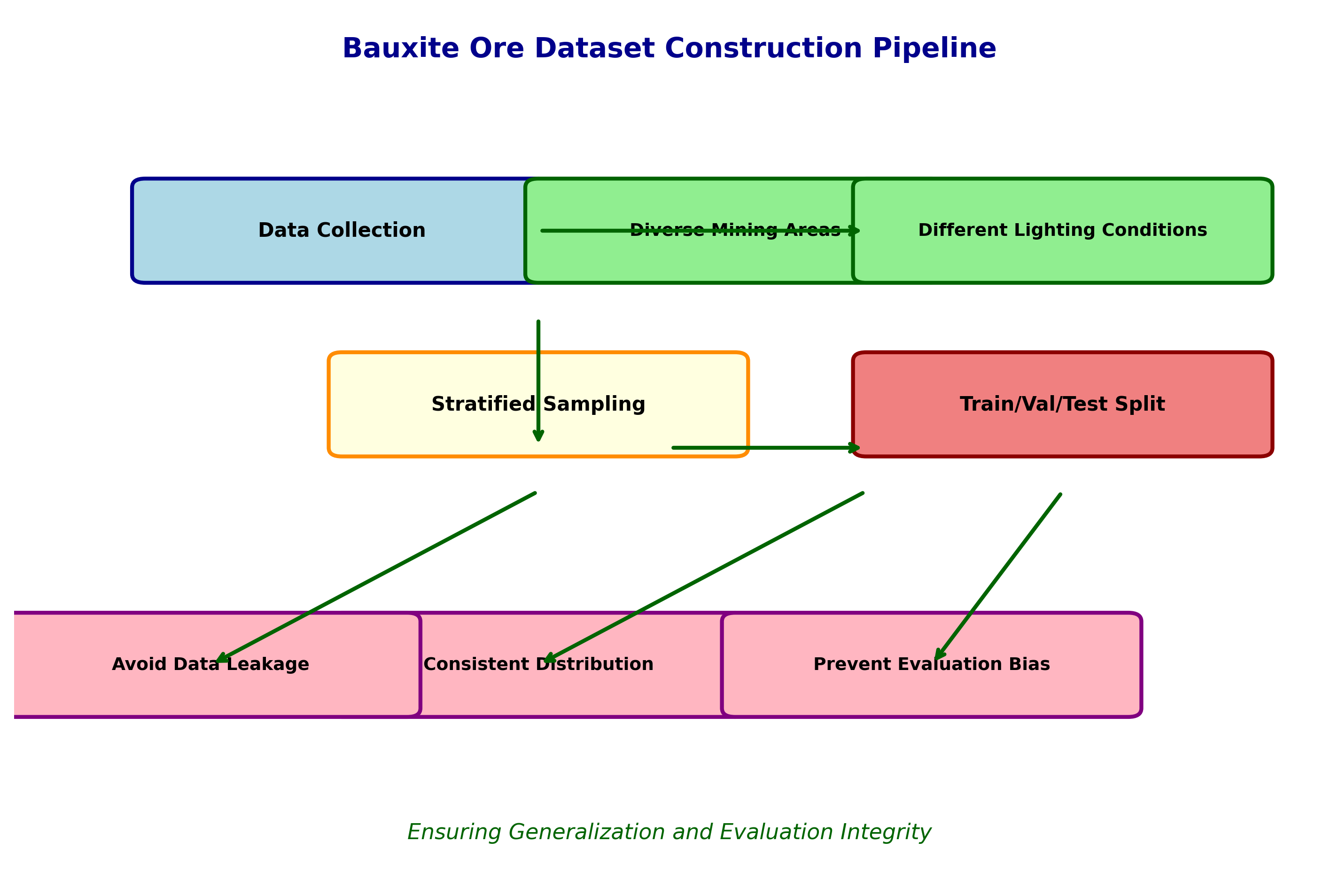 高质量的数据集是深度学习模型成功的关键。我们收集了来自全国5个主要矿区的铝土矿图像,共计约50,000张,涵盖不同光照条件、不同背景环境和不同品级的铝土矿。数据集中的铝土矿分为高品位、中品位和低品位三个类别,通过人工标注确保标签准确性。
