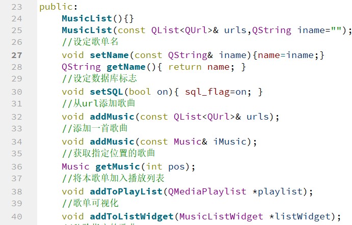 MusicList 类将 Music 类组织为一个一维结构,便于管理。它表示的是一个歌单,里面包着对歌曲列表进行管理的相关方法。