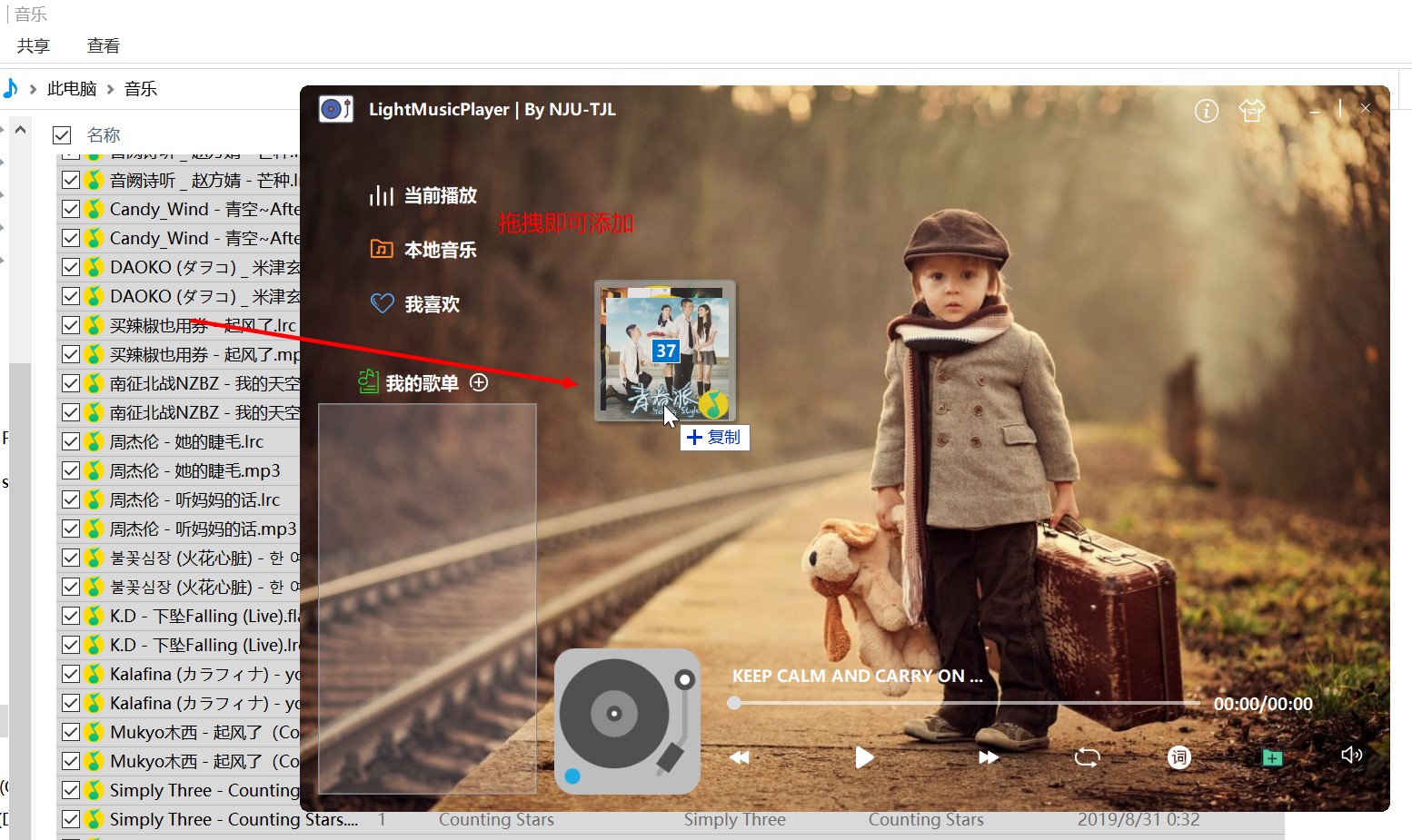 添加本地音乐操作,也可以直接拖拽文件至主窗口界面来完成,也会自动筛选文件类型。