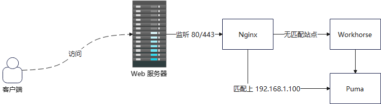 相当于如果 nginx['custom_nginx_config'] 配置的 server 块如果匹配上,就会将流量请求直接送到 Puma 服务,绕过了 Workhorse 处理
