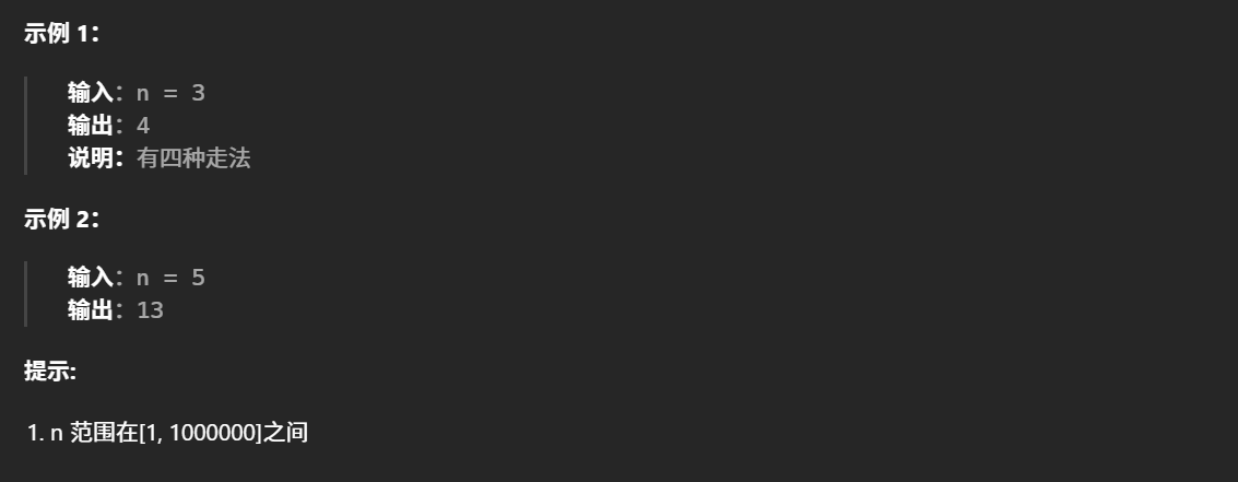 如果 **dp[i]**表示小孩上第 i 阶楼梯的所有方式,那么他应等于所有上一步的方式之和: