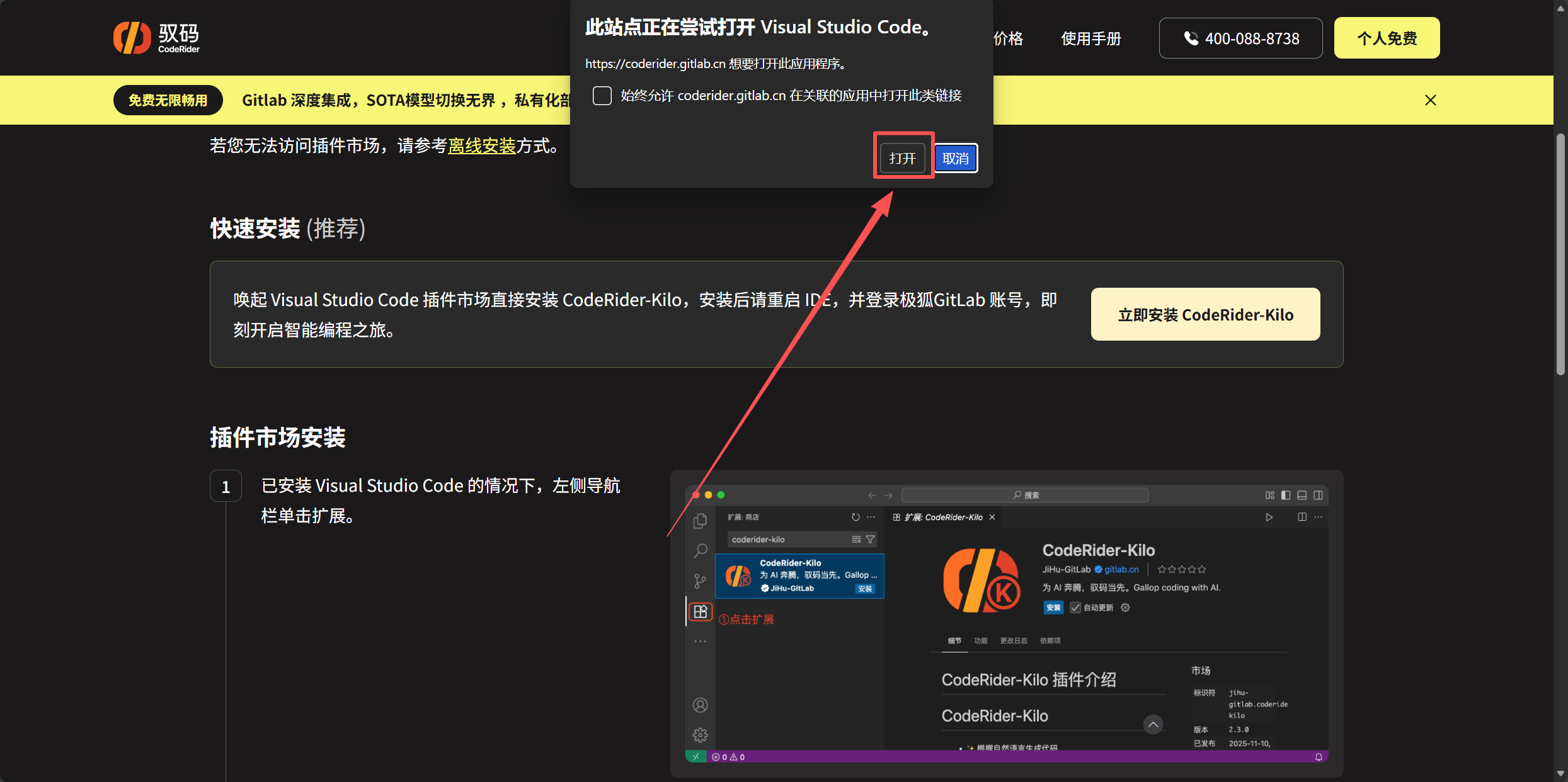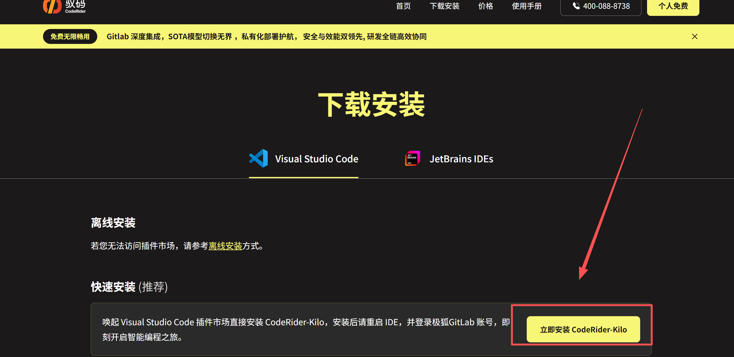 我们首先打开CodeRider-Kilo的官网:https://coderider.gitlab.cn/installation/?channel=csdn