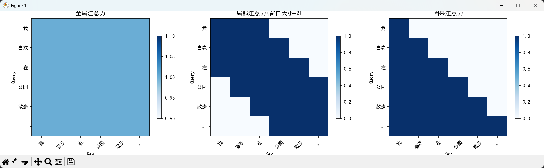 # 3. 因果注意力 (解码器使用,防止看到未来)