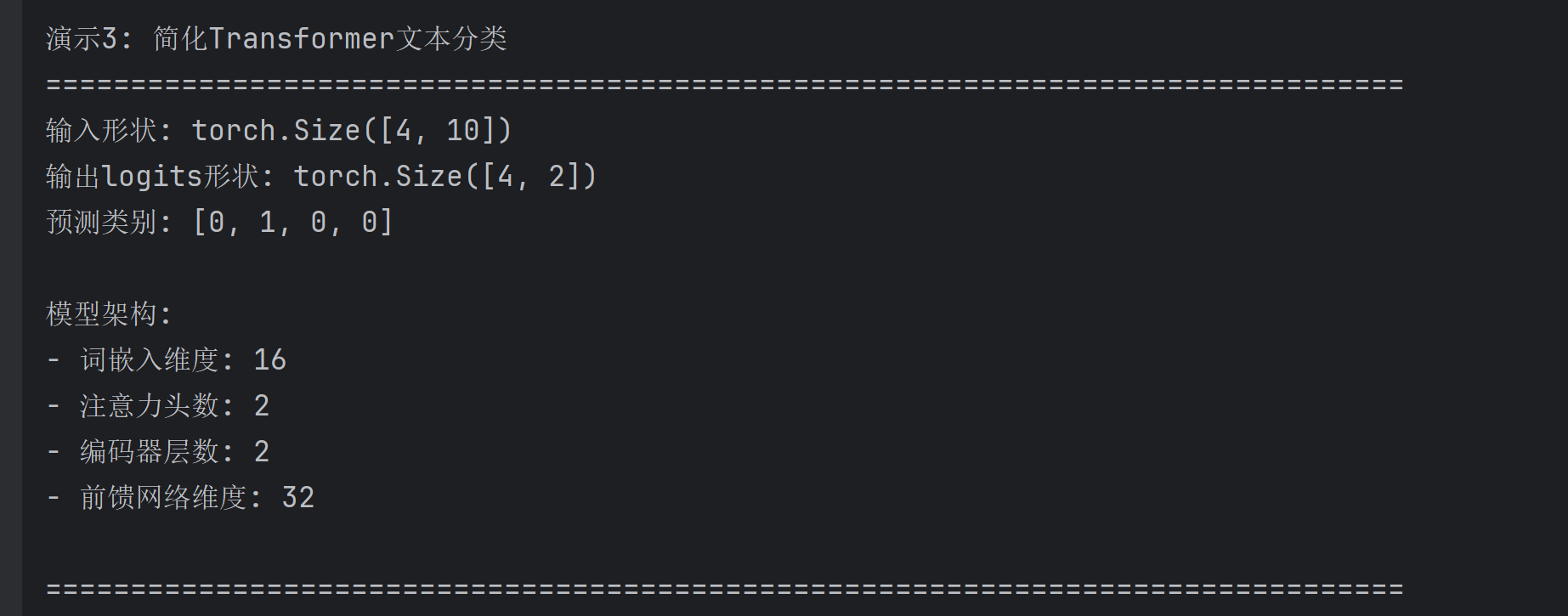 下面是一个完整的Python项目,演示Transformer的核心组件。这个项目包含一个简化的Transformer模型实现,以及一个示例任务(简单的序列转换),可以直接在PyCharm中运行。