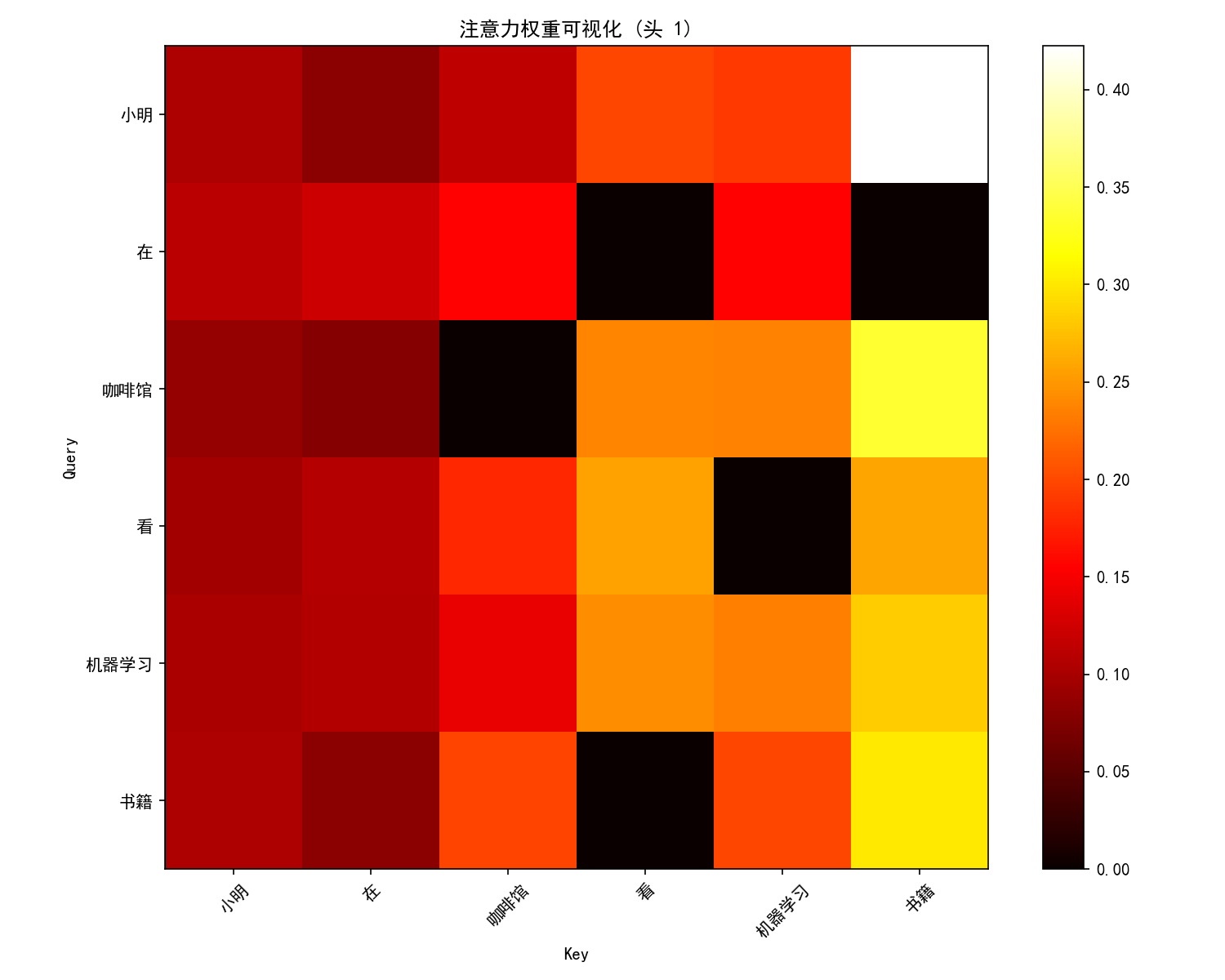 举个具体的例子:输入文本是"小李在咖啡馆看机器学习书籍",当计算"书籍"的自注意力时: