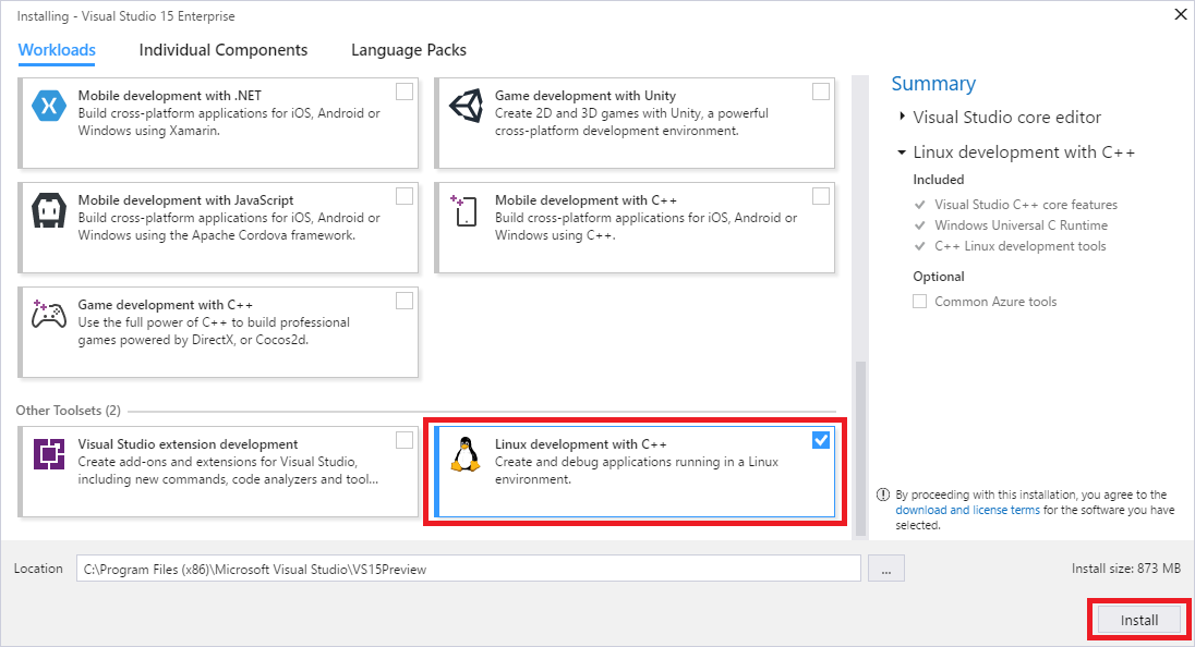 对于任何这些方案,都必须拥有"使用 C++ 的 Linux 开发"工作负载 。