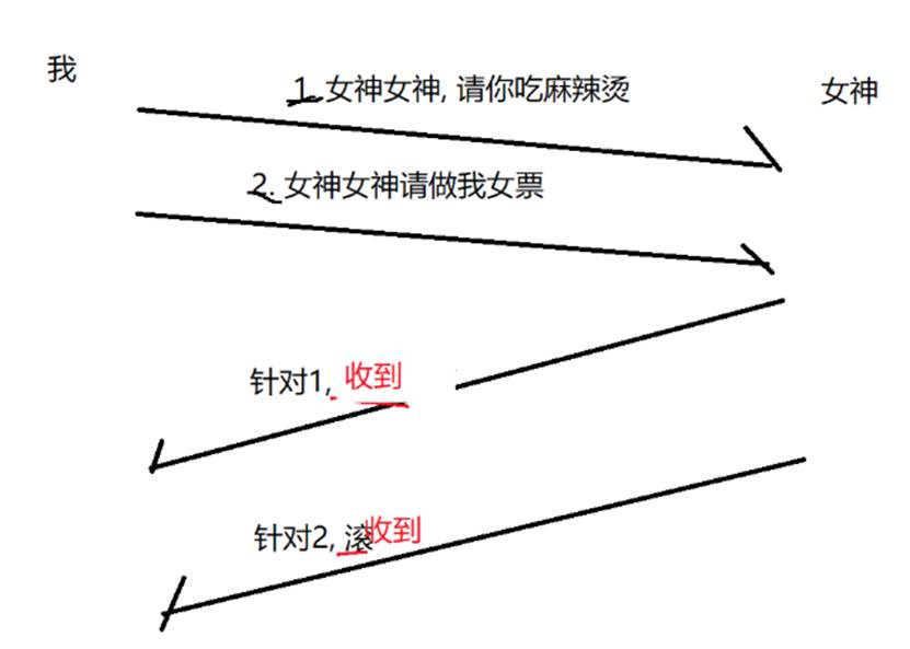 我先问吃不吃麻辣烫,再问做我女朋友好不好,但是由于网络传输过程中,可能每个传输走的路线不一样,导致后续的消息先到,先发的消息反而后到,这就会导致出现问题