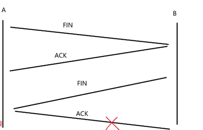 假设现在A发起了挥手,B收到之后返回ACK,然后A就关机了,这个时候B的FIN还没传输到,但是A已经关机了,这个时候B因为没有收到ACK,就会进行超时重传,如果进行多次之后没有反应,就会认为A存在故障,就会主动释放连接。