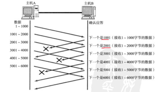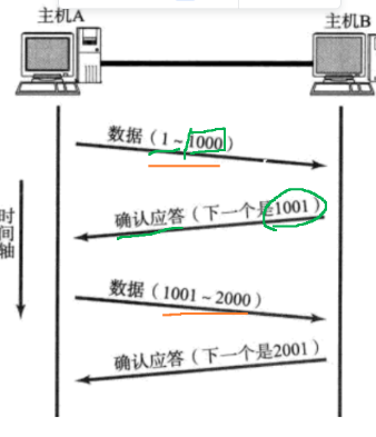 主机A先把1-1000的数据发送给主机B,这个时候主机B会收到并返回一个TCP的头部报文确认序号哪里会写下一个是1001,告诉对方我已经收到1001之前的全部数据,这个编号是针对载荷的,报头并不会编号