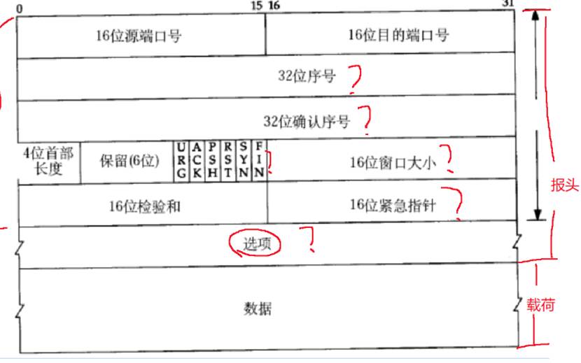 从端口号开始到选项,都是属于报头,数据部分属于载荷