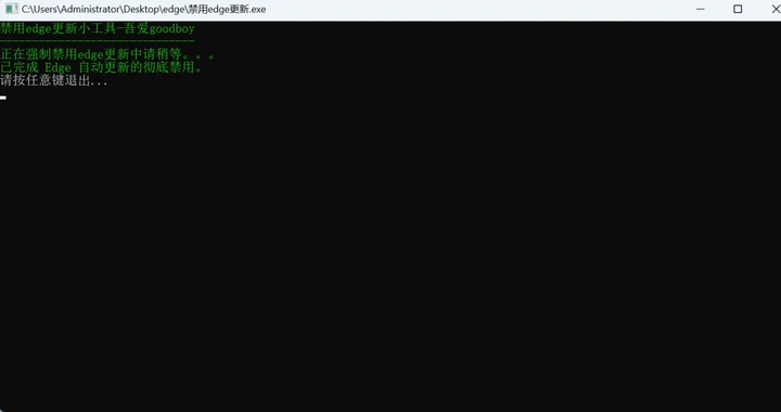 当程序提示"已完成 Edge 自动更新的彻底禁用",然后按任意键退出。