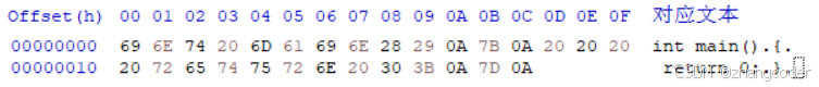 | 6D | 61 | 69 | 6E | 28 | 29 | 0A | 7B | 0A | 20 | 20 | 20 | 20 | 72 | 65 | 74 |