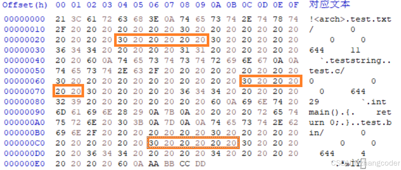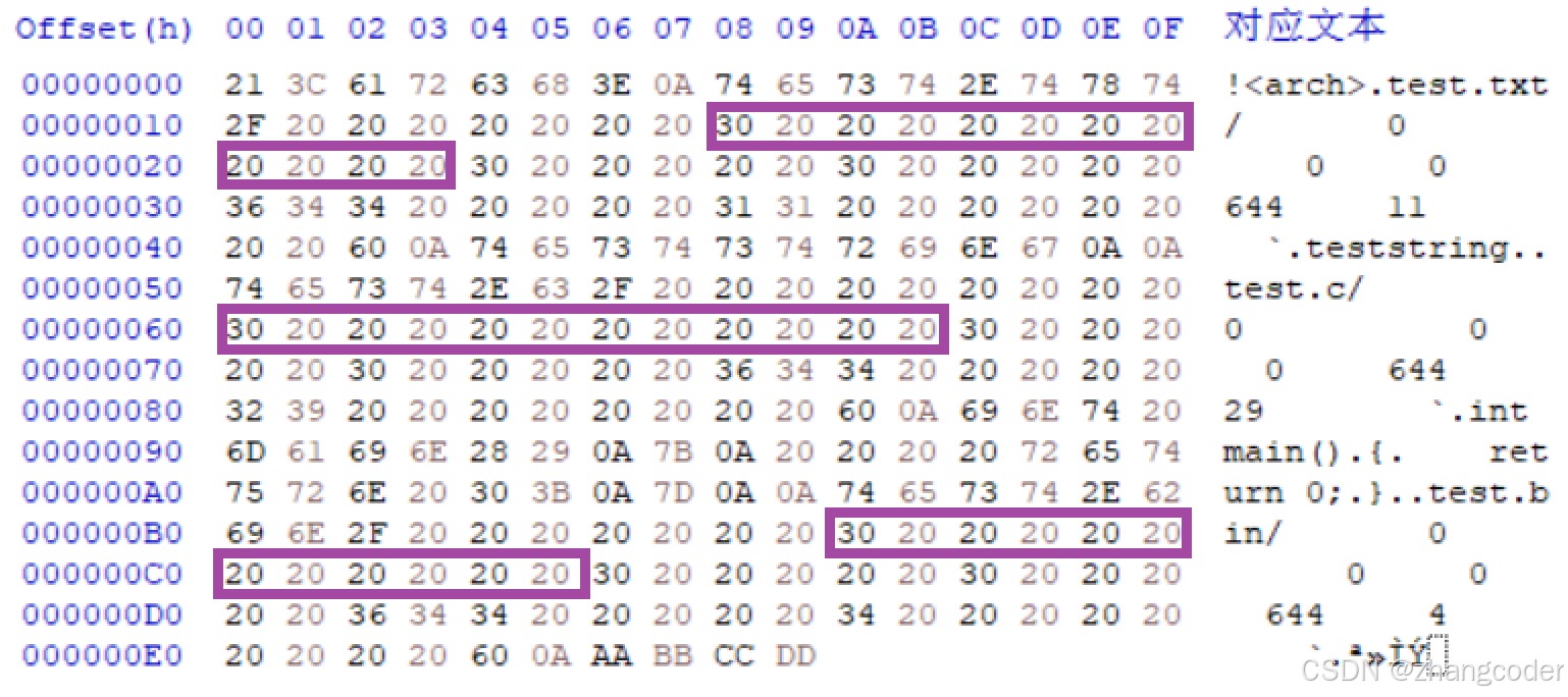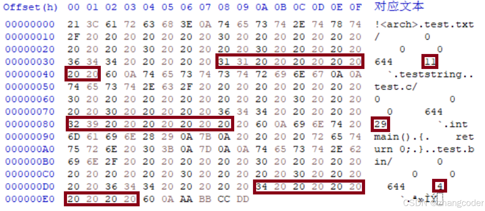 结论: 显然这部分内容就是每个文件的struct ar_hdr结构体实例化后的内容