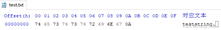 | 20 | 20 | 60 | 0A | 74 | 65 | 73 | 74 | 73 | 74 | 72 | 69 | 6E | 67 | 0A | 0A |