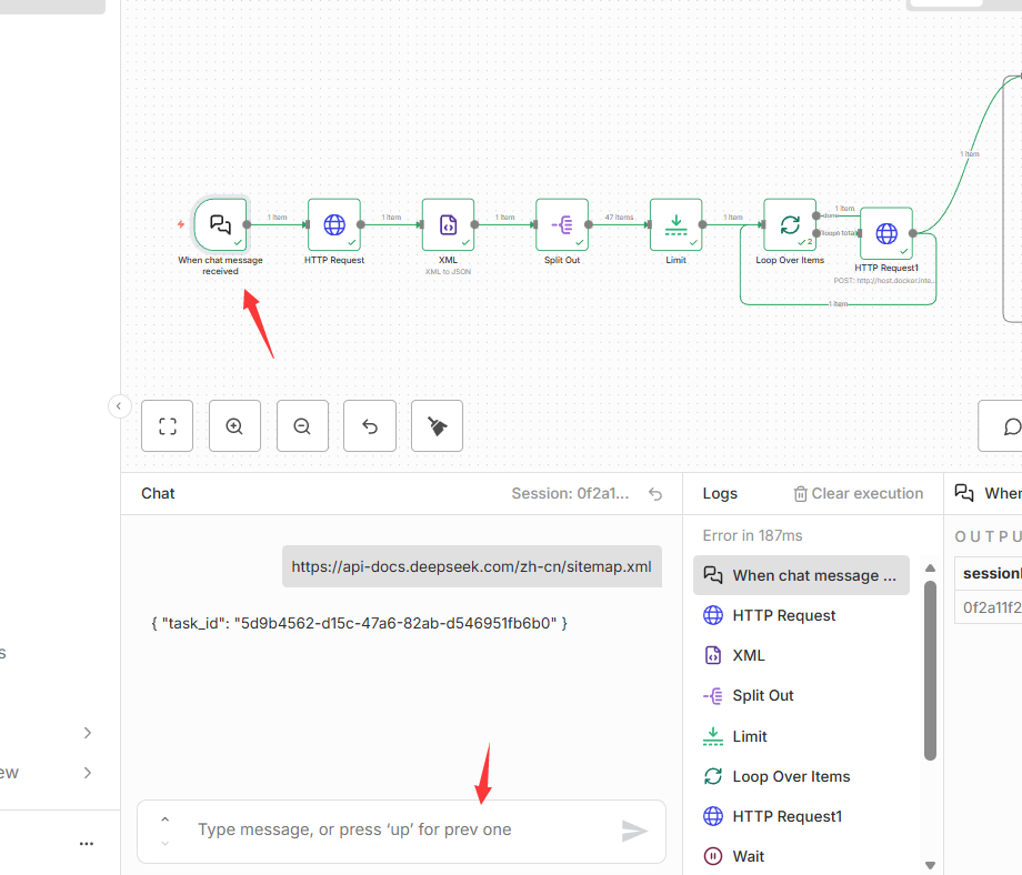 - 数据输入与触发 工作流由用户在聊天界面中输入一个URL(通常是站点地图地址)来启动,该URL成为所有后续处理的起点。