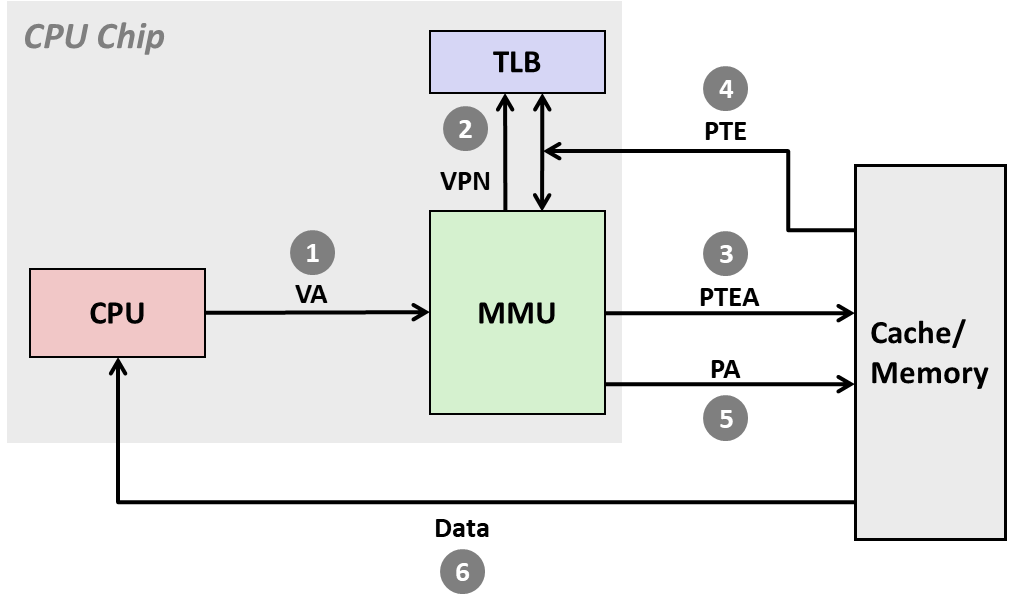 - MMU 使用虚拟地址中的 VPN 部分访问 TLB。
