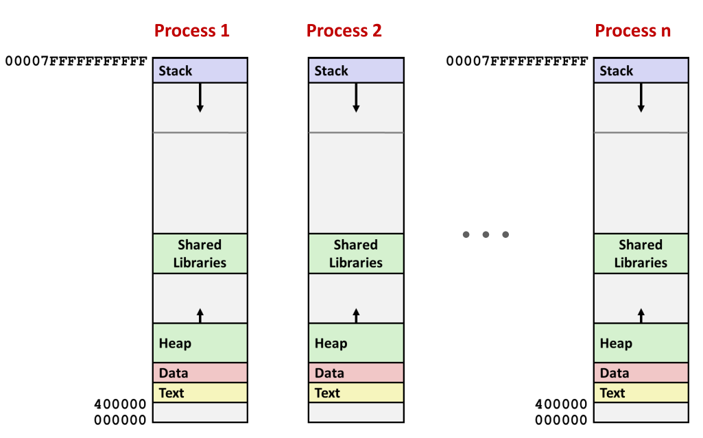 - 虚拟地址空间:包含 N = 2 n N = 2^n N=2n个虚拟地址的集合: 0 , 1 , 2 , ... , N − 1 {0, 1, 2, ..., N−1} 0,1,2,...,N−1