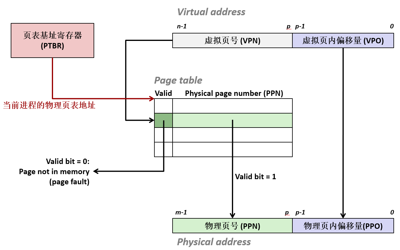 - 若对应页表项(PTE)有效且指向物理页,则发生命中。
