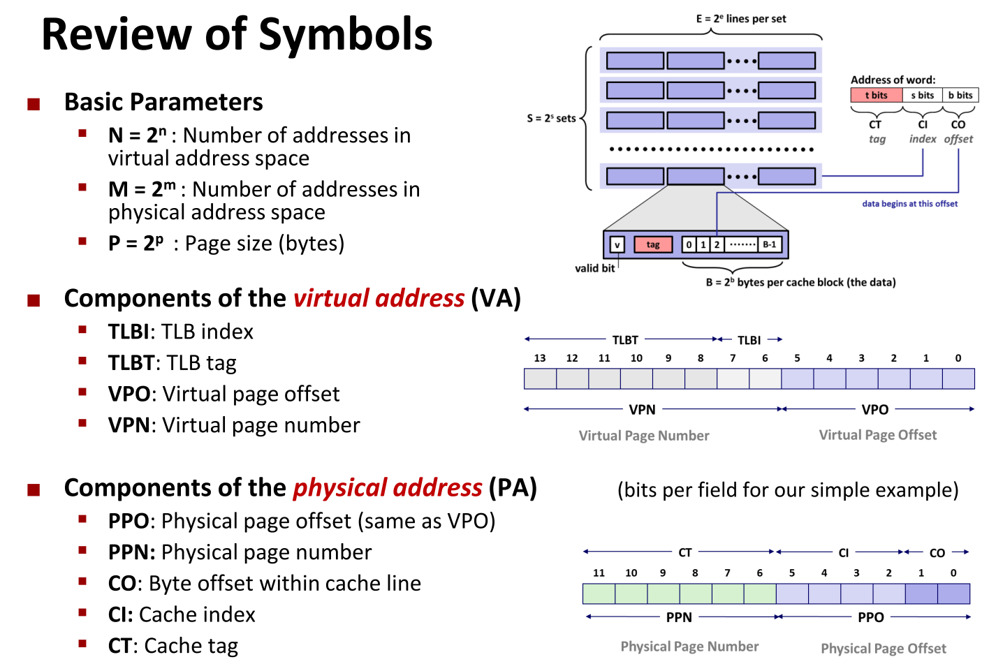 - 虚拟地址空间 V = 0 , 1 , ... , N -- 1 V = {0, 1, ..., N--1} V=0,1,...,N--1