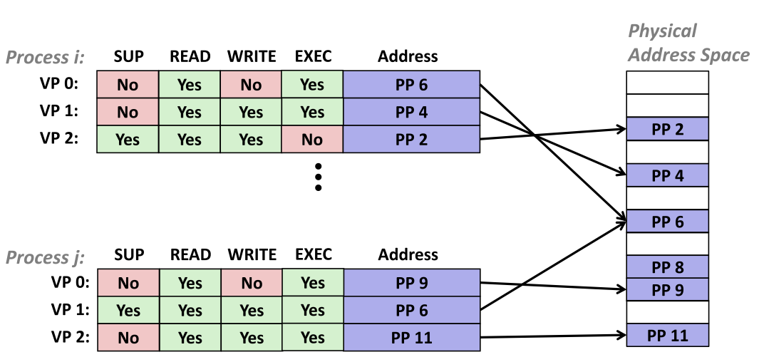 - 进程间共享:多个进程可通过映射同一物理页实现代码与数据共享(如PP 6)。