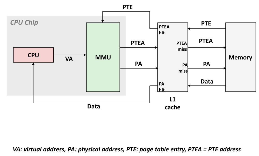 - 未命中处理流程:TLB 查找失败,MMU 需从内存中加载对应 PTE,加载后将其填入 TLB,继续完成地址翻译