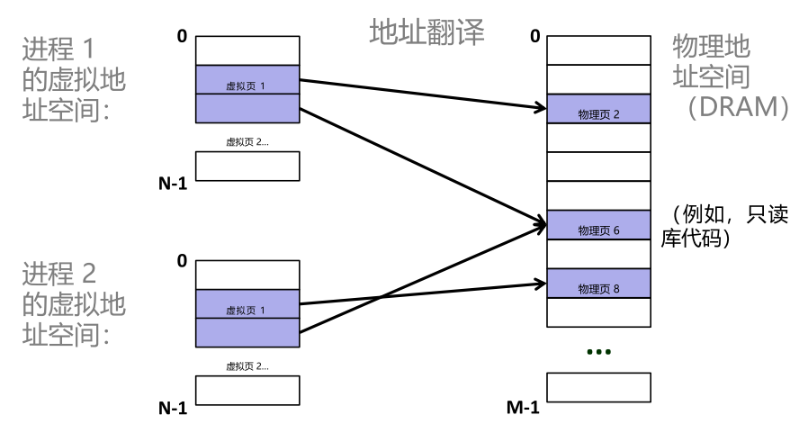 - 地址转换:不同进程的虚拟地址空间可映射到不同或相同的物理页,支持共享只读库代码等场景。