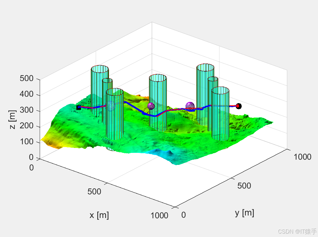 - 环境建模:构建三维空间环境模型,输入无人机起点、终点坐标,以及静态障碍物和动态障碍物的初始位置与运动参数;